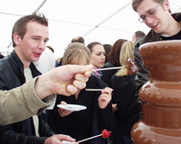 Подсластите и скрасьте Вашим клиентам посещение выставки экзотическим шоколадным фонтаном. Шоколадный фонтан это центр общения, возле него люди непринужденно знакомятся и общаются, наслаждаясь изысканным лакомством.
